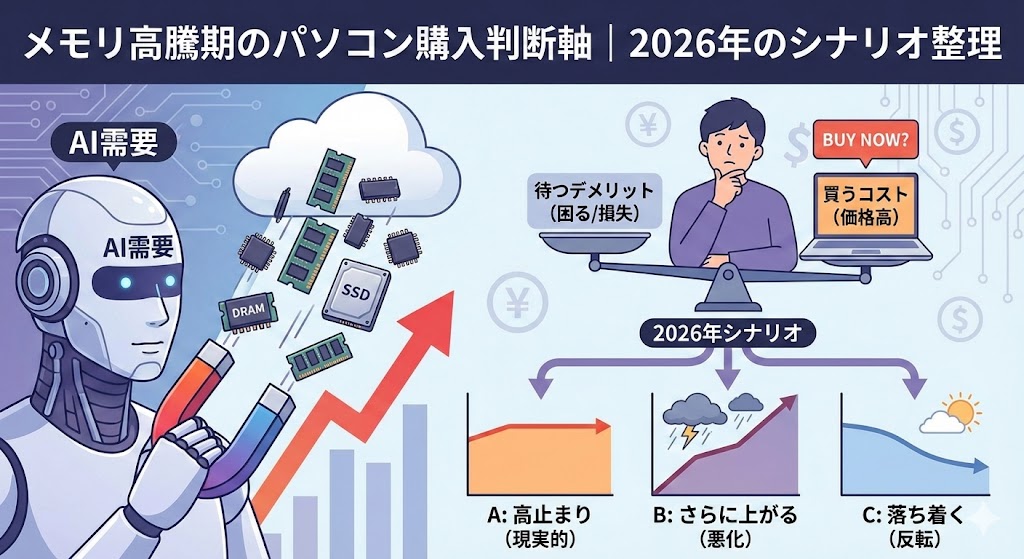 メモリ高騰期のパソコン購入判断軸|2026年のシナリオ整理とFPが考える買い時