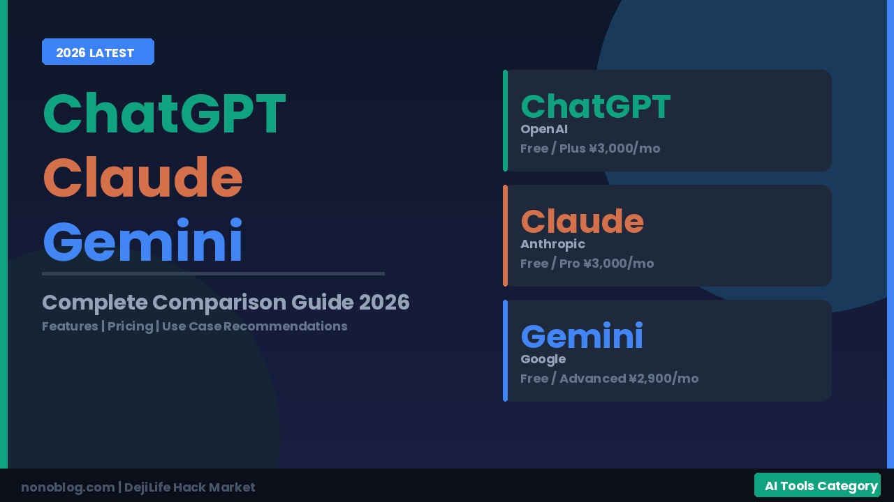 「ChatGPTとClaude、どっちを使えばいいの?」「Geminiって無料でここまでできるの?」——そんな疑問を持ったことはないでしょうか。 筆者は3つのAIツールを日常的に使い分けながら、ブログ執筆・業務効率化・リ