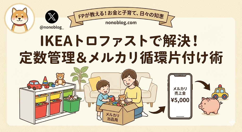 増え続ける子供のおもちゃをIKEAトロファストで定数管理し、あふれた分はメルカリで売る「循環型」片付け術を紹介。FP視点でのお金の循環サイクルと、子供への金融教育効果も解説します。